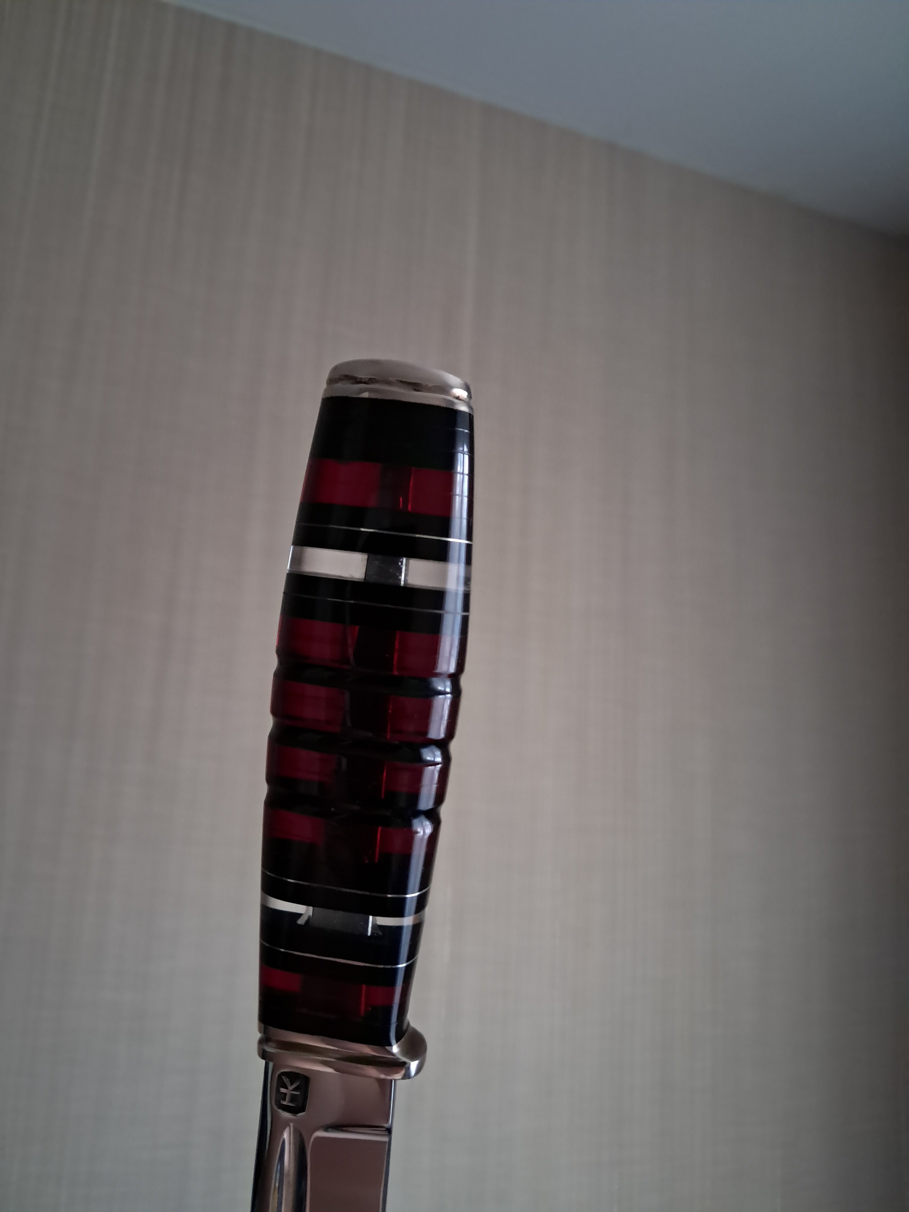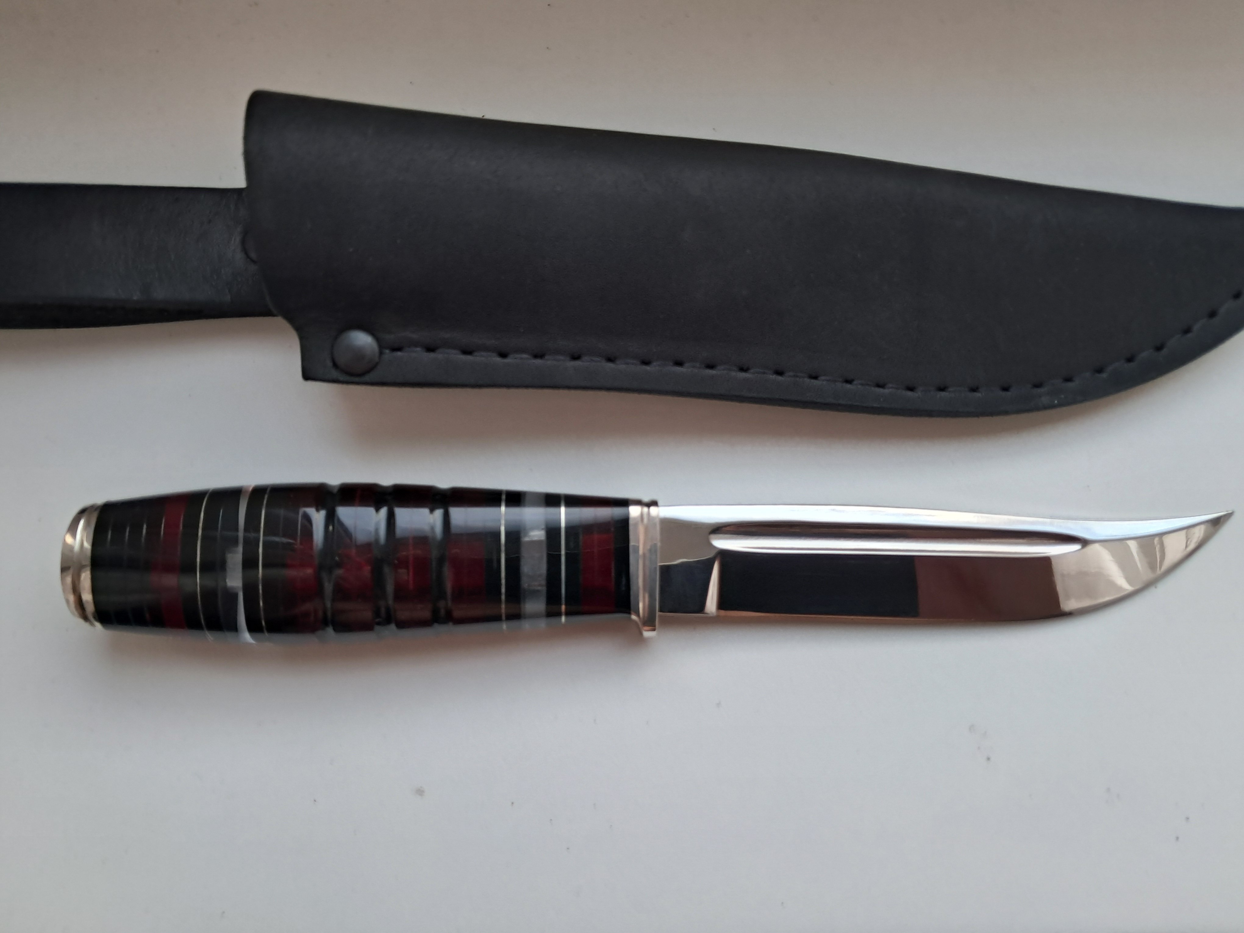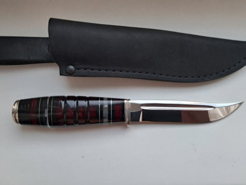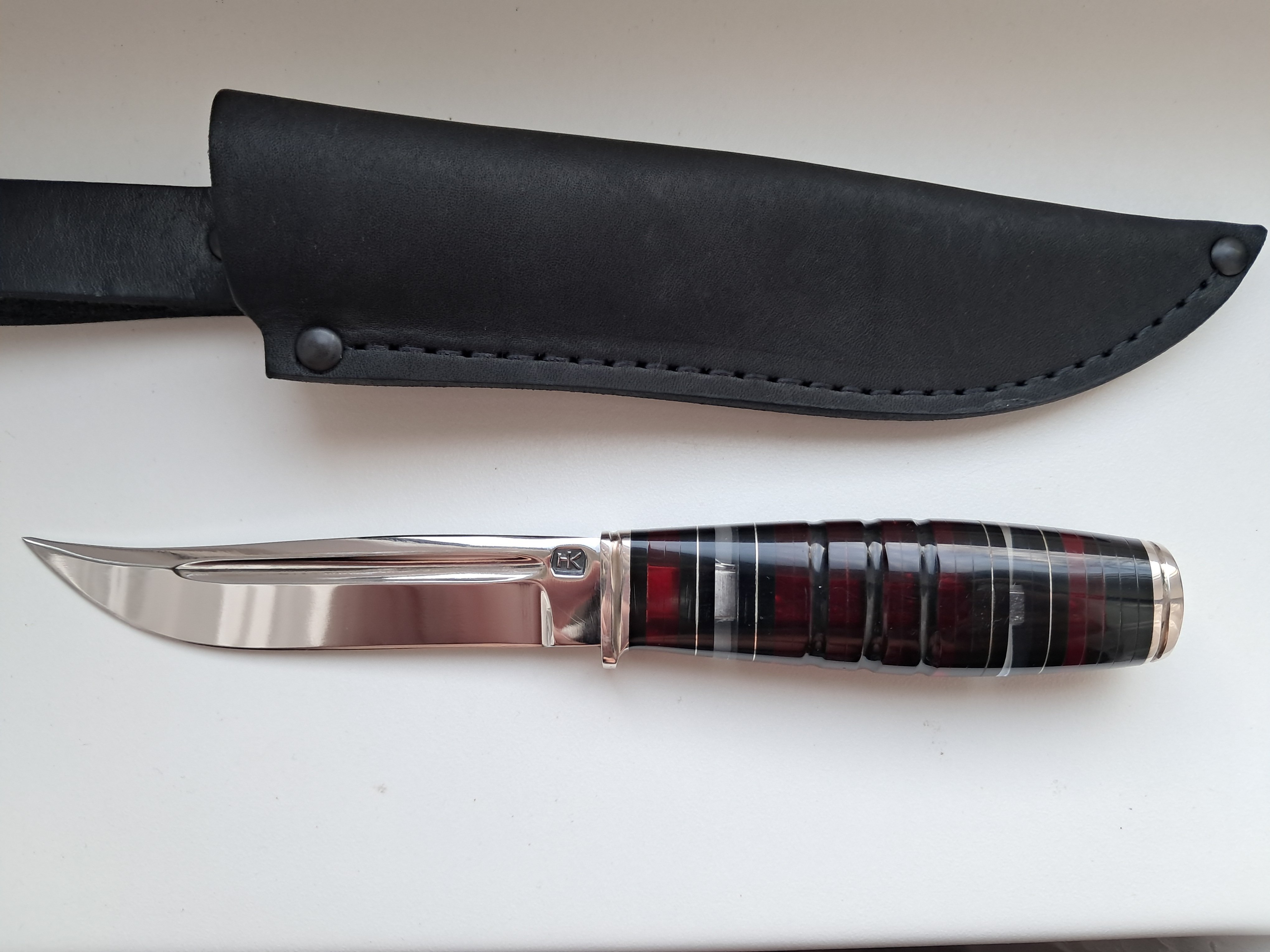 Предлагаю нож с наборной рукоятью из оргстекла и мельхиора. Сборка мастера из Москвы, клинок Николая Кашина с ганзы. 110 х 20 х4 мм. АУС-8. Рукоять 105 мм, отличная работа, стоимость 9500р. Плюс почта на покупателе.