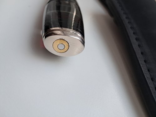 Предлагаю ножи фултанг фирмы "5 элемент " , куплен год назад на выставке, не использовал, полочник. Нож с авторской микартой с рисунком выпуклым, клинок ручной ковки молотом на угольной печи с крио обработкой, кузница Эдуарда Саурова, сталь D2, нож заточен производителем на точилка " Профиль". Размеры 110 х 3,2 мм клинок, рукоять тоже около 110 мм, примерно .Цена 7500 р. Почта сверху. В ножнах сидит свободно. Снят с продажи.
