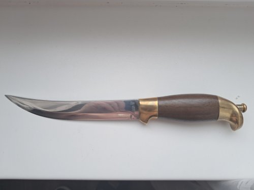 Предлагаю редкий охотничий нож Helle Dyre Vaa 65. Нож 70-х годов в очень хорошем состоянии. Клинок ламинат Хелле старого образца, 165 мм, толщина 3,5 мм. Из коллекции, не является холодным оружием! Цена 20 000 рублей плюс почта или сдэк по договорённости, под ответственность покупателя. Предложение не долгое, как с деньгами определюсь, сниму.