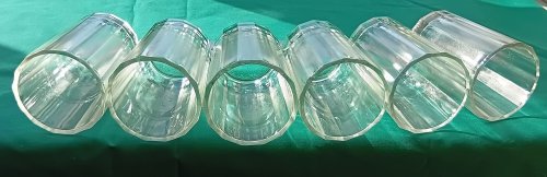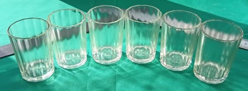 Лот 122. (Был такой лот 90). НЕпользованный наборчик. Стопки гранёные 100гр 6шт. (зеленоватый оттенок) Клеймо ССЗ ц 5 к. 60-е годы. Высота 73, низ - 45, верх - 52 мм. Цена 800 руб. Справляйтесь о наличии. -