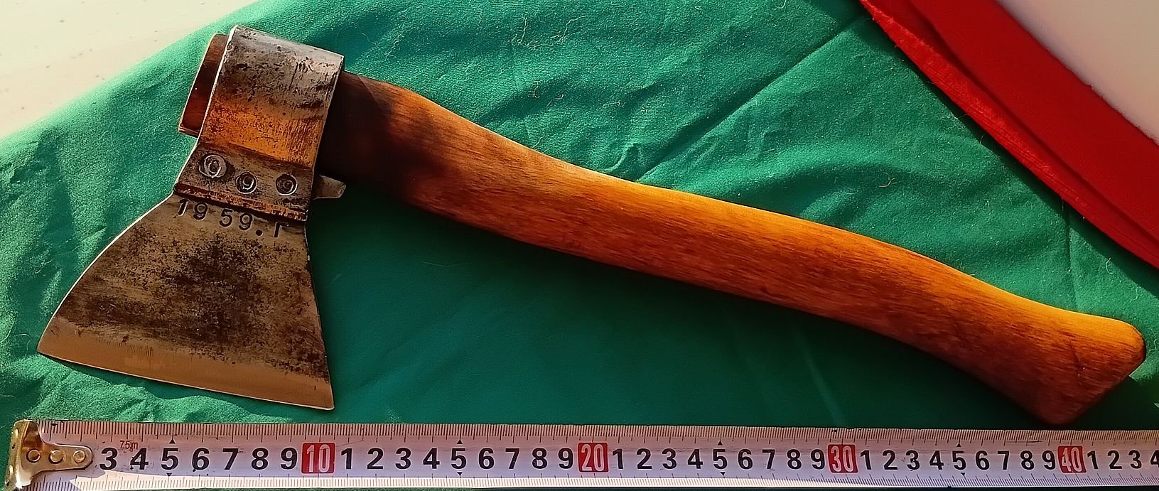 Один из первых советских туристов! (Если не самый первый, покажите у кого есть раньше, я не встречал). Кто производил - мне не ведомо, только догадки. Какой размер был изначально, тоже не знаю, у этого голова 138х107, вес в сборе 623 гр., насажен добротно - 1550 руб. за советский рарик. Справляйтесь о наличии. -