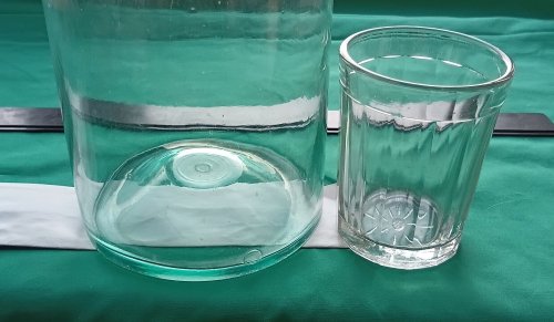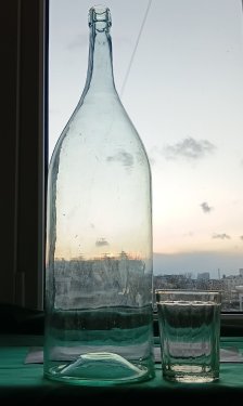 Лот 128. Только намедни вечером принёс, решил сфотать, пока ещё светло, сейчас отправил в ёмкость на замОчку. Четверть со стаканом 250 мл одним лотом. Бутыль, похоже, ещё имперская, стакан - из первых послевоенных, с широким основанием, выпущенный на Уршельском заводе с ранним клеймом СУЗ. Не велика редкость, но интересный и в хорошем состоянии. Цена за комплект - 1450 руб. Справляйтесь о наличии. -