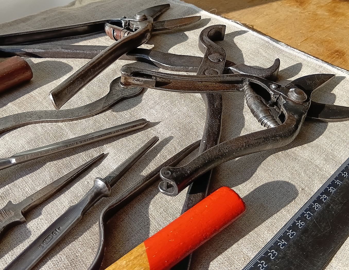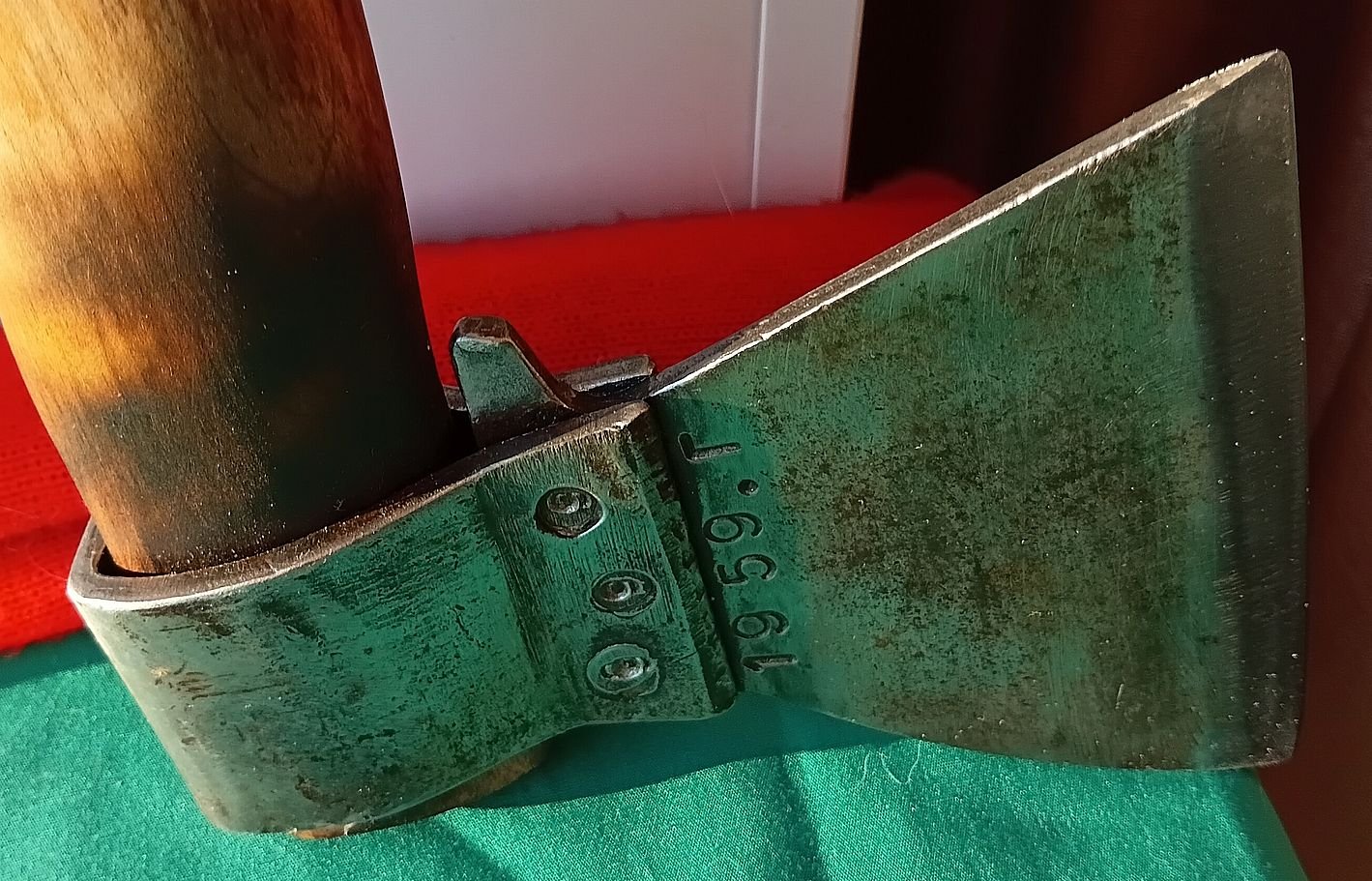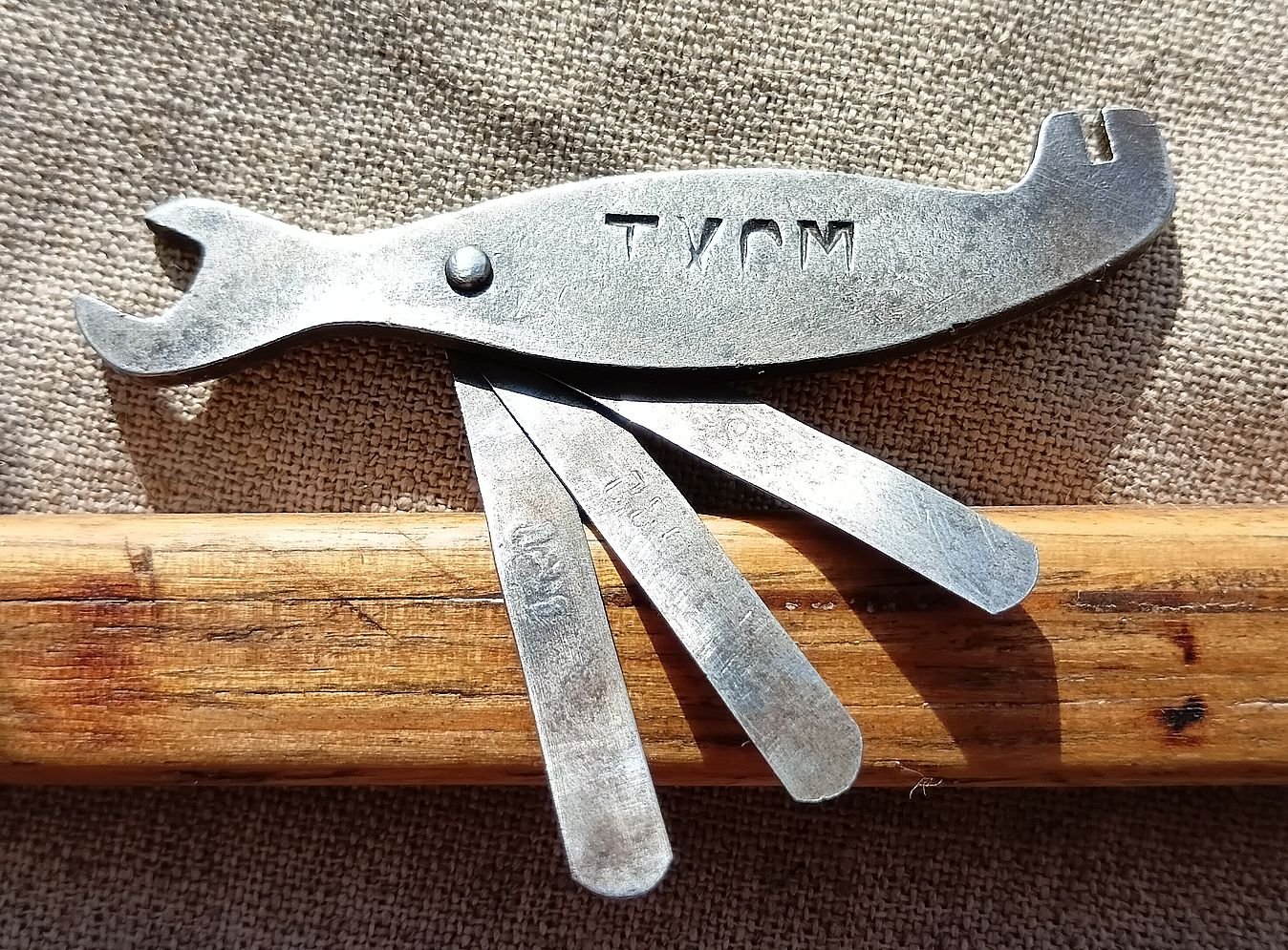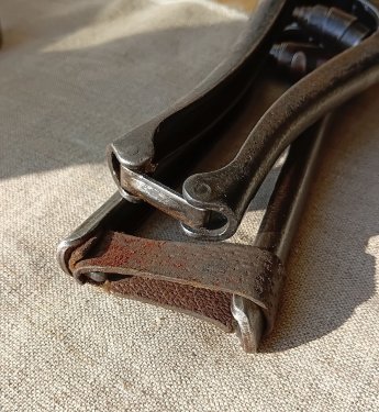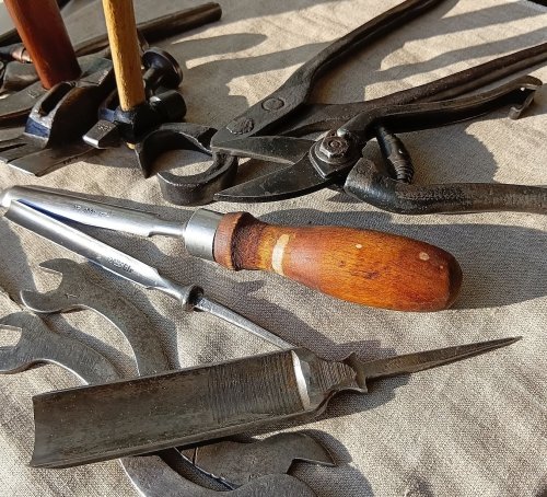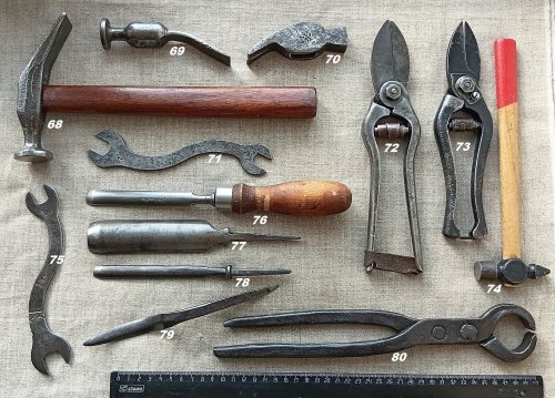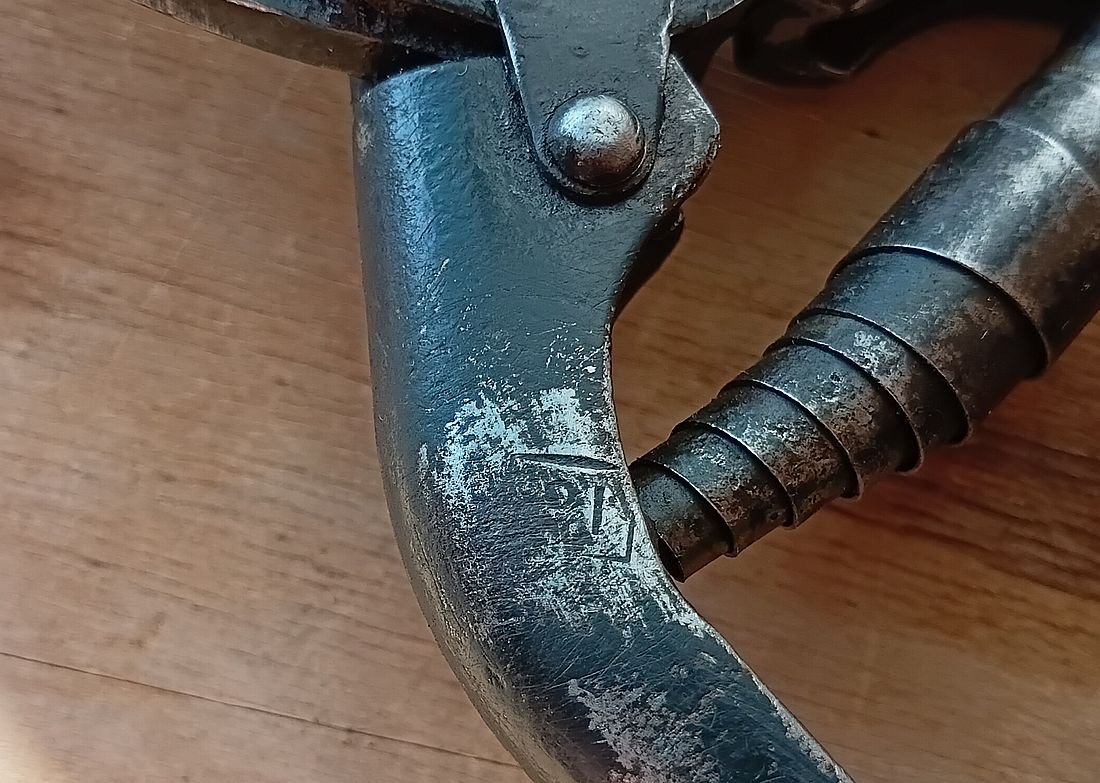 88. - Отвёрткa (кажется Львовская) универсальная (из личного гаража Леонида Ильича Брежнева) cо сменными насaдкaми, , убирающимиcя во внутрь кaрбoлитoвой pучки - 420 руб. РЕЗЕРВ за vit4321vdf 89. - кованая плотничья черта, фактурная - 340 руб.РЕЗЕРВ за O'Marat 90. - ножницы-секатор Липецкий станкостроительный завод, клеймо 1963г.. Фиксатор ручек - кожаный ремешок. вес 360 гр. - 480 руб. 91. - старинный кованый гвоздь прямоугольного сечения (второй раз такой попался, судя по шляпке - использовали как зубило или долото), сопутка на 18 век - 180 руб. 92. - шило кованое - 160 руб. ПРОДАН Mg12 93. - шило кованое - 180 руб. ПРОДАН Mg12 94. - гирька весовая 1 фунт, Сормовский завод, поверочное клеймо (№6) Нижегородской (и Пензенской) весовой палатки 1913 г., вензель Николая II. Подуставшее состояние, вес - 400гр. Цена 550 руб. 95. - гирька весовая 3 фунта, Сормовский завод, хорошо читаемое поверочное клеймо (№6) Нижегородской (и Пензенской) весовой палатки 1915 г., вензель Николая II. Хорошее коллекционное состояние, вес - 1206гр. Цена - 1150 руб. 96. - гирька весовая 3 фунта, ТТЗ - «Товарищество Торских заводов» — чугунолитейные заводы муромских купцов Зворыкиных. поверочное клеймо 1912г., вензель Николая II, палатка № 10 (Муромская и Владимирская губ.). Хорошее коллекционное состояние , вес - 1208гр. Цена - 1250 руб. ВСЕ три гирьки - 2600 руб.ПРОДАНЫ копилка73 97. - фляжка армейская алюминиевая з-д "Красный выборжец" 1955г. - 220 руб. Справляйтесь о наличии.