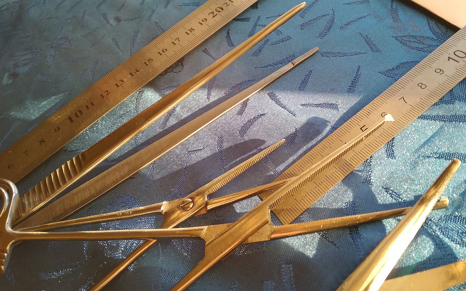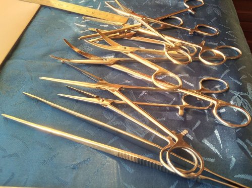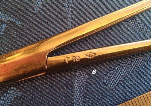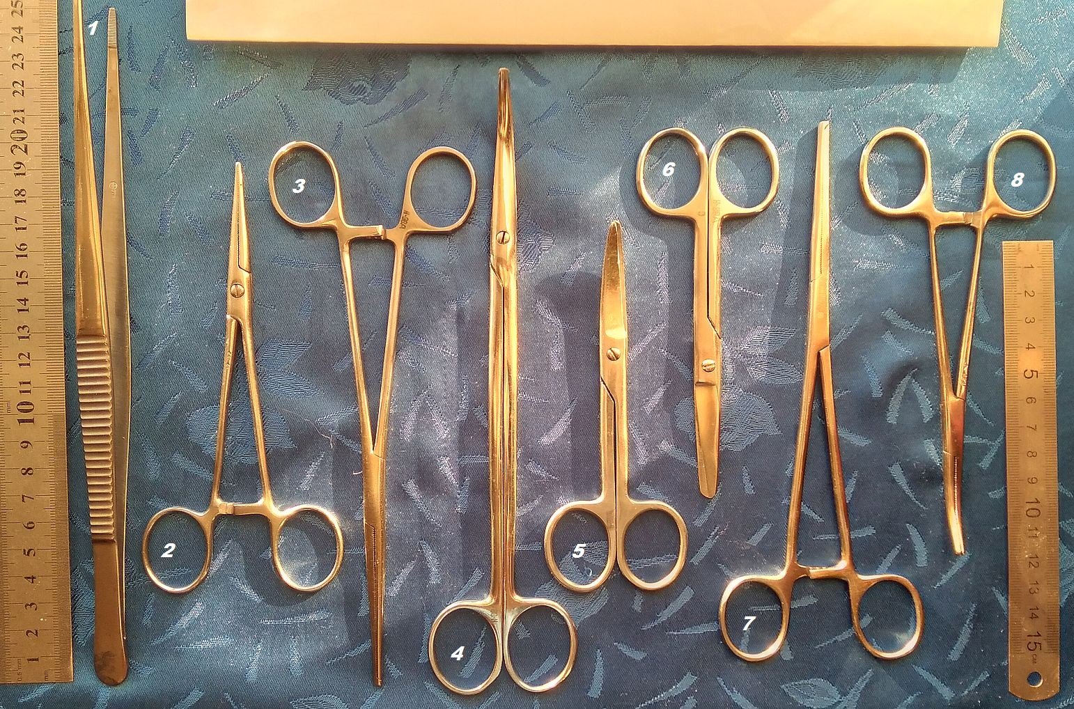 122. 1. - пинцет анатомический, длина 25 см - 340 руб. 2. - зажим прямой, длина 16 см (губки 4 см) - 300 руб. 3. - зажим прямой зубчатый, длина 20 см (губки 6 см) - 380 р 4. - ножницы изогнутые, длина 23 см - 480 руб. 5. - ножницы изогнутые, длина 14 см - 400 руб. 6. - ножницы прямые, длина 14 см - 400 руб. 7. - зажим прямой зубчатый, длина 20 см (губки 6 см),(как номер 3) - 380 руб. 8. - зажим изогнутый, длина 16 см (губки 4 см) - 300 руб. (Всё исключительно белое и зеркальное, просто освещение такое). СПРАВЛЯЙТЕСЬ ОТ НАЛИЧИИ. -