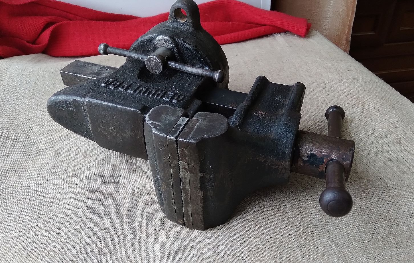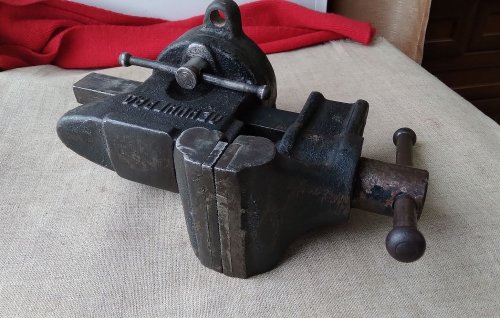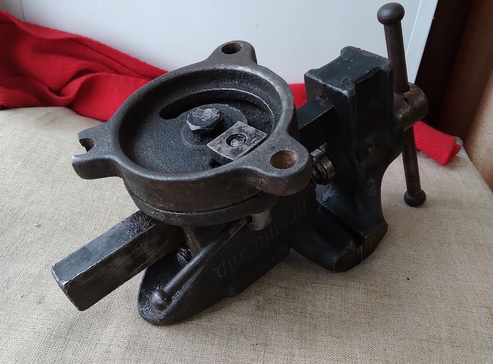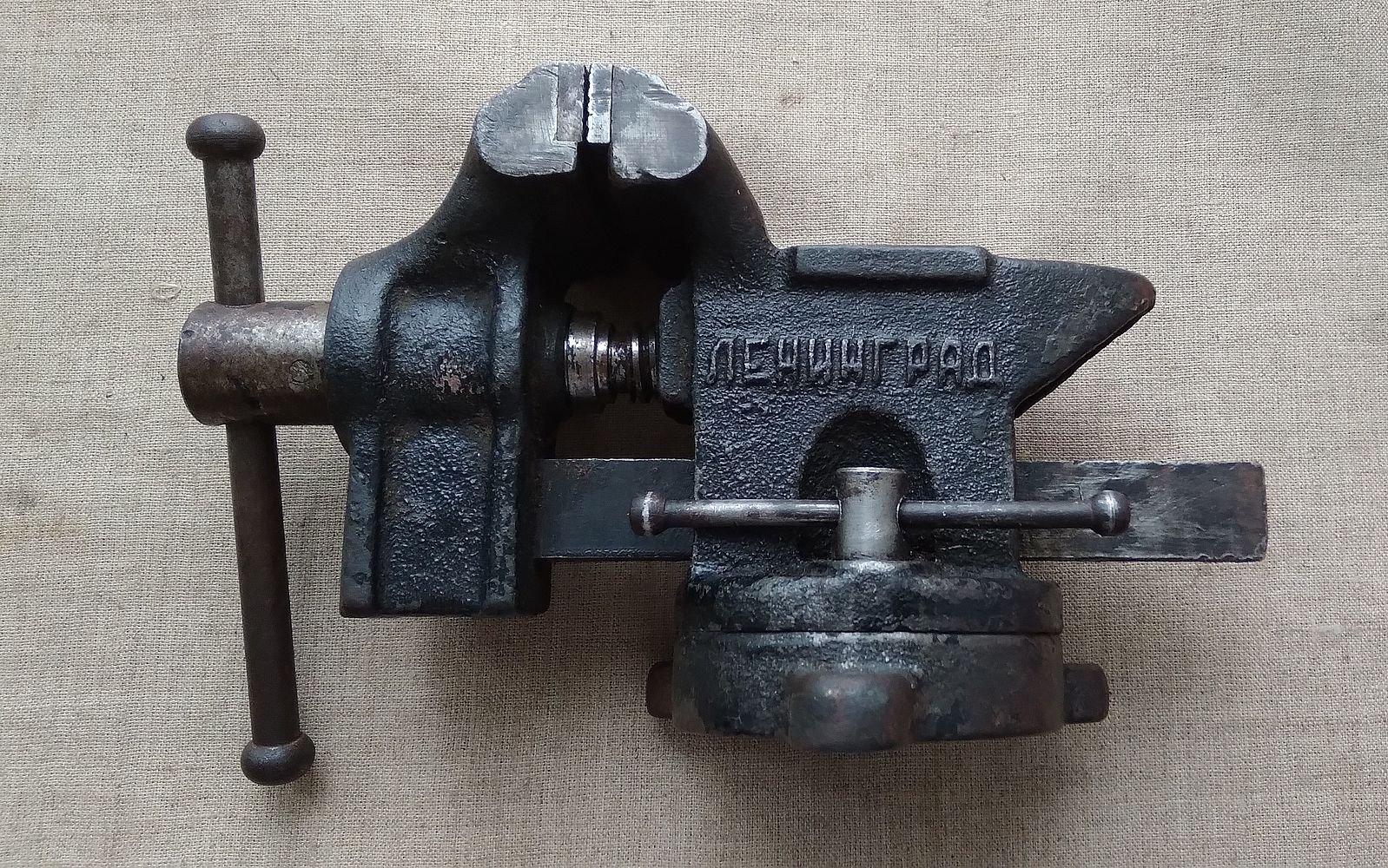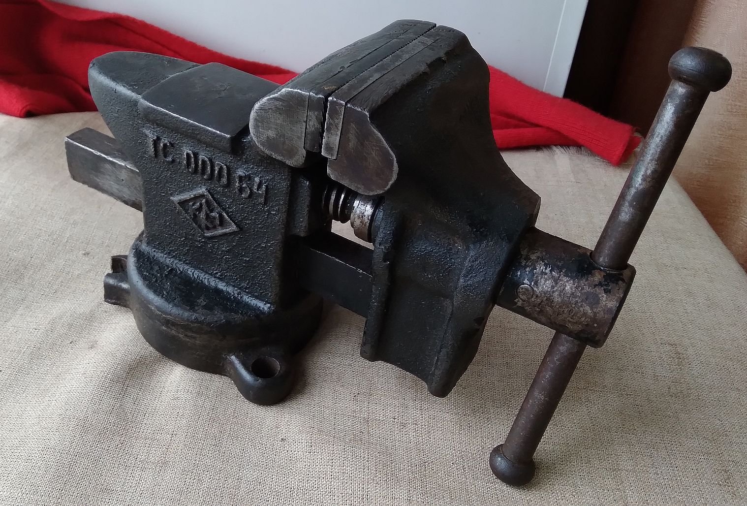 Номер 69. Поворотные тиски "Ленинград" завода им. Карла Маркса 1964г.выпуска. Ничего с ними не делал, только слегка протёр. На одной крепёжной лапке скол (вполне компенсируется наложением сверху шайбой). Работают непринужденно, с неплохой жесткостью. Удачная конструкция для непрофессионального, бытового использования. Длина губок 80 мм, макс. развод 85 мм. Вес 5180 гр. Отличный ход, поворот на 180 градусов. Цена 3500 руб. Справляйтесь о наличии.