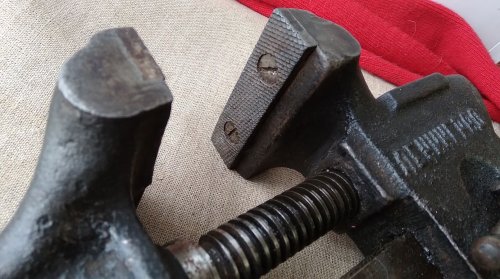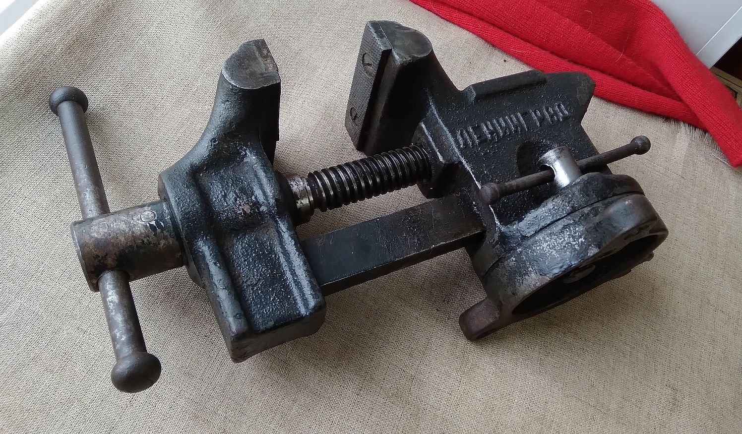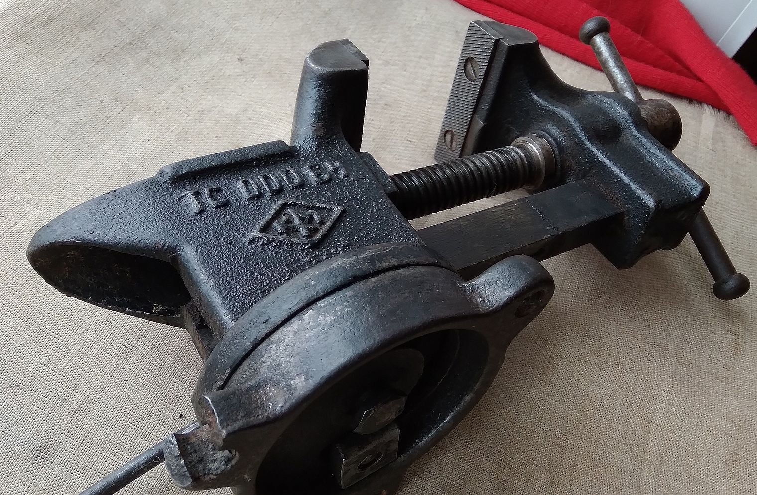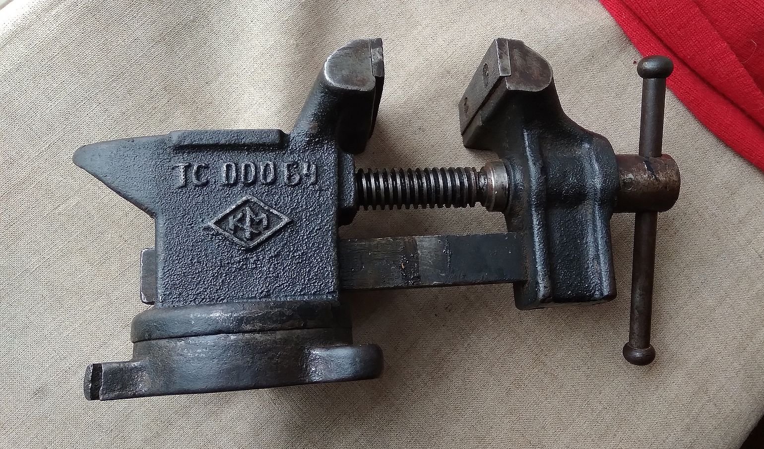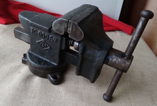 Номер 68. В доказательство принадлежности предыдущих к производителю, эти с клеймом. Тисочки Ленинградского Государственного компрессорного завода. Длина губок 40 мм, макс. развод 40 мм, струбцина 44 мм. Вес 830гр. - 950 руб. Ничего с ними не делал, предлагаю в том виде, как достались. Справляйтесь о наличии.