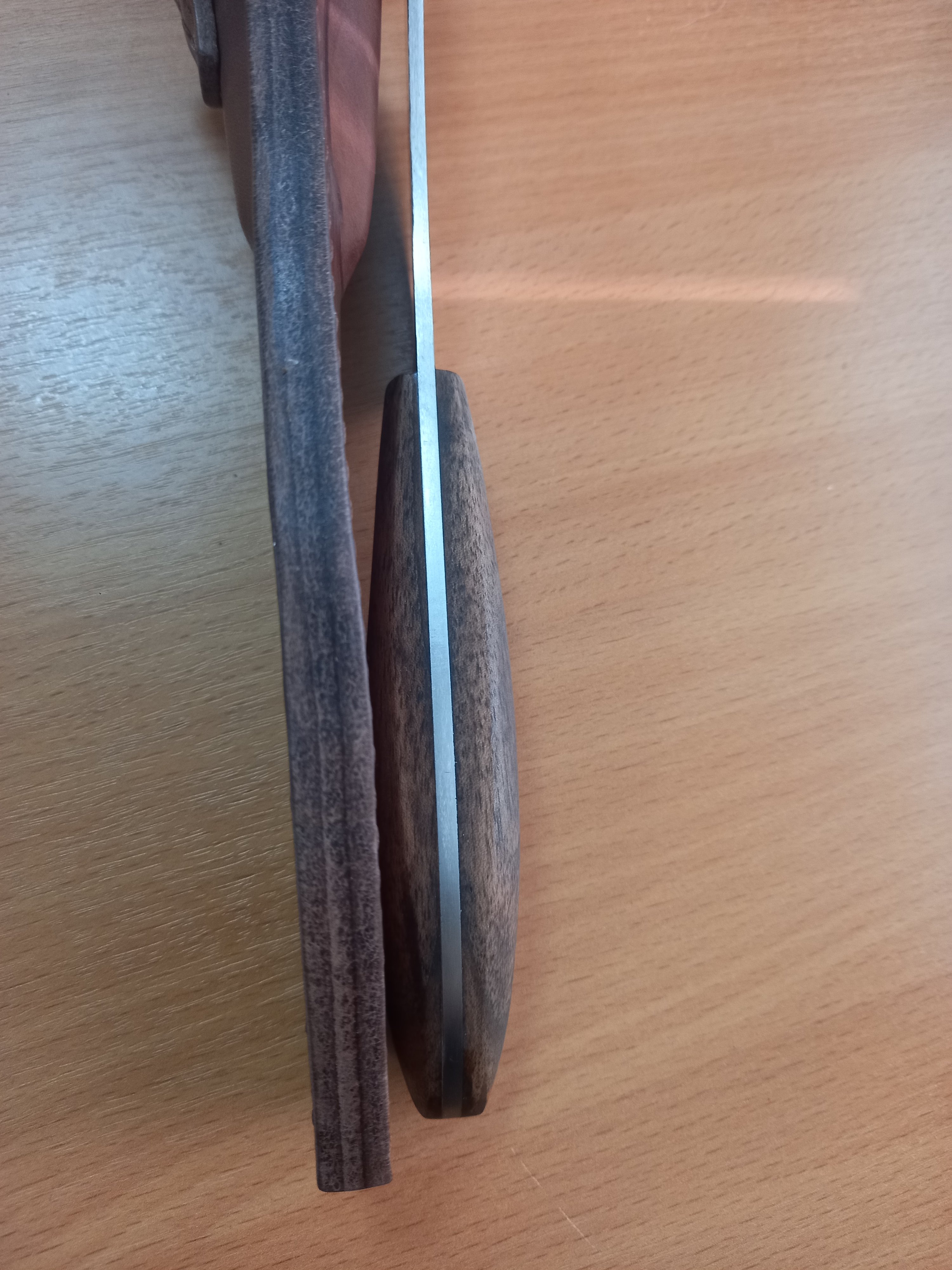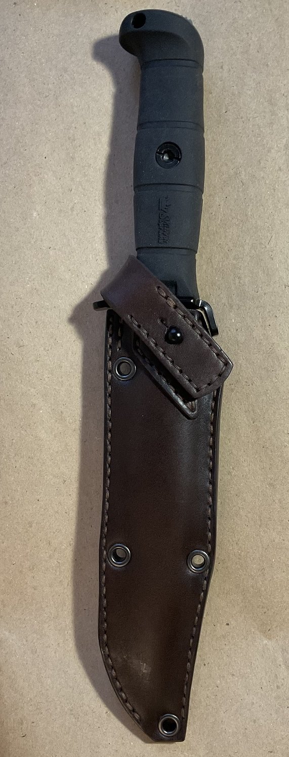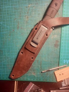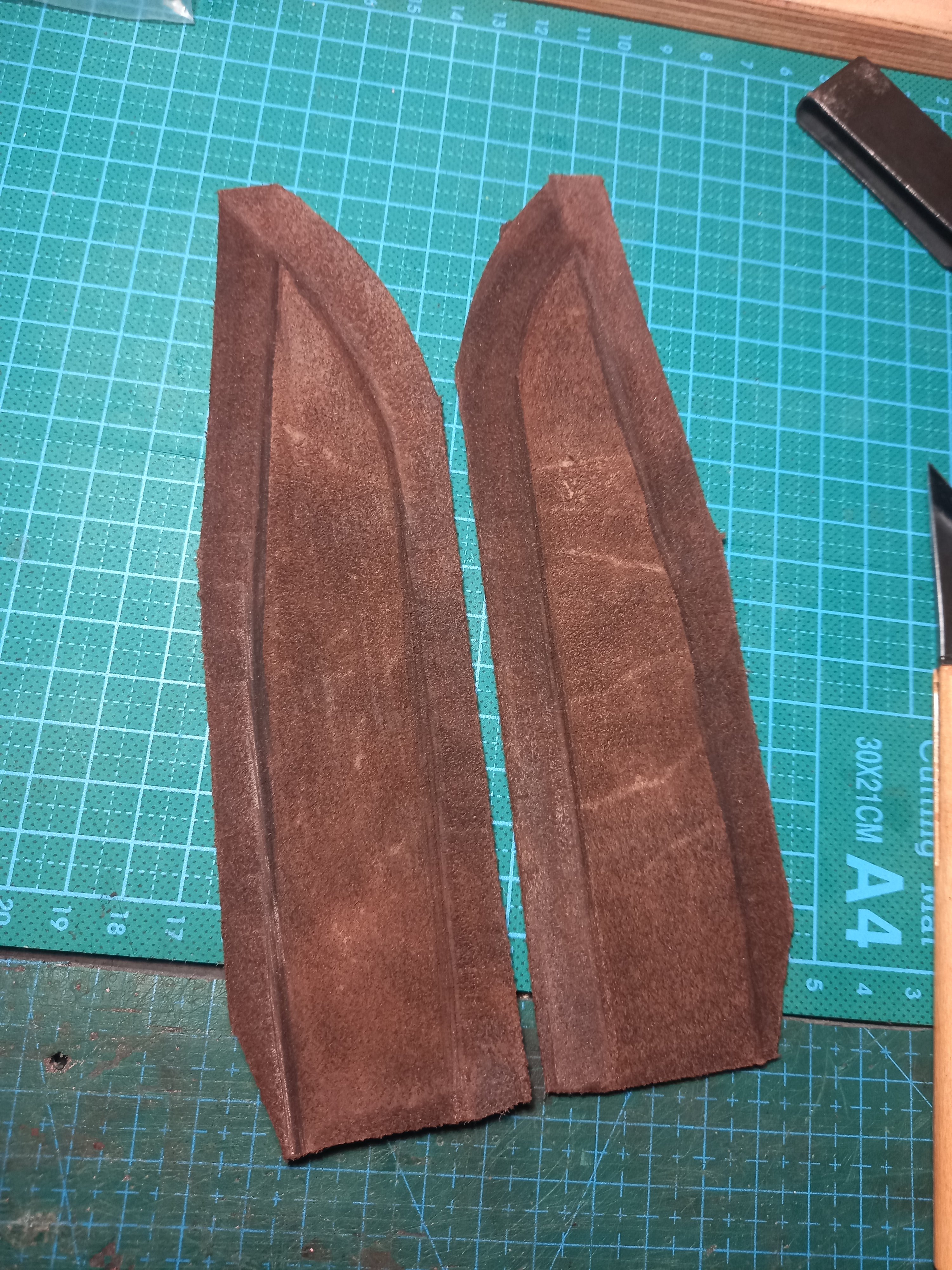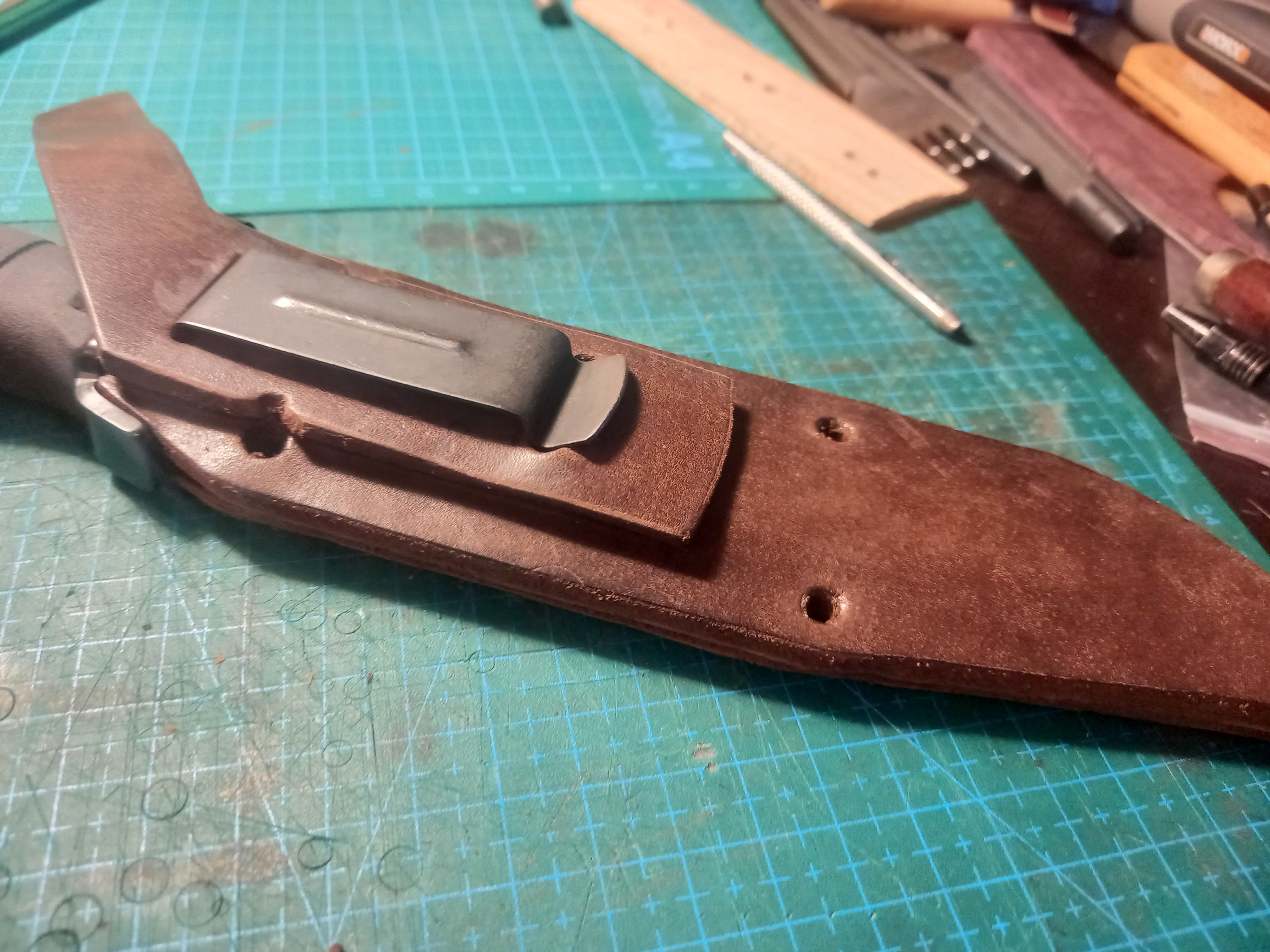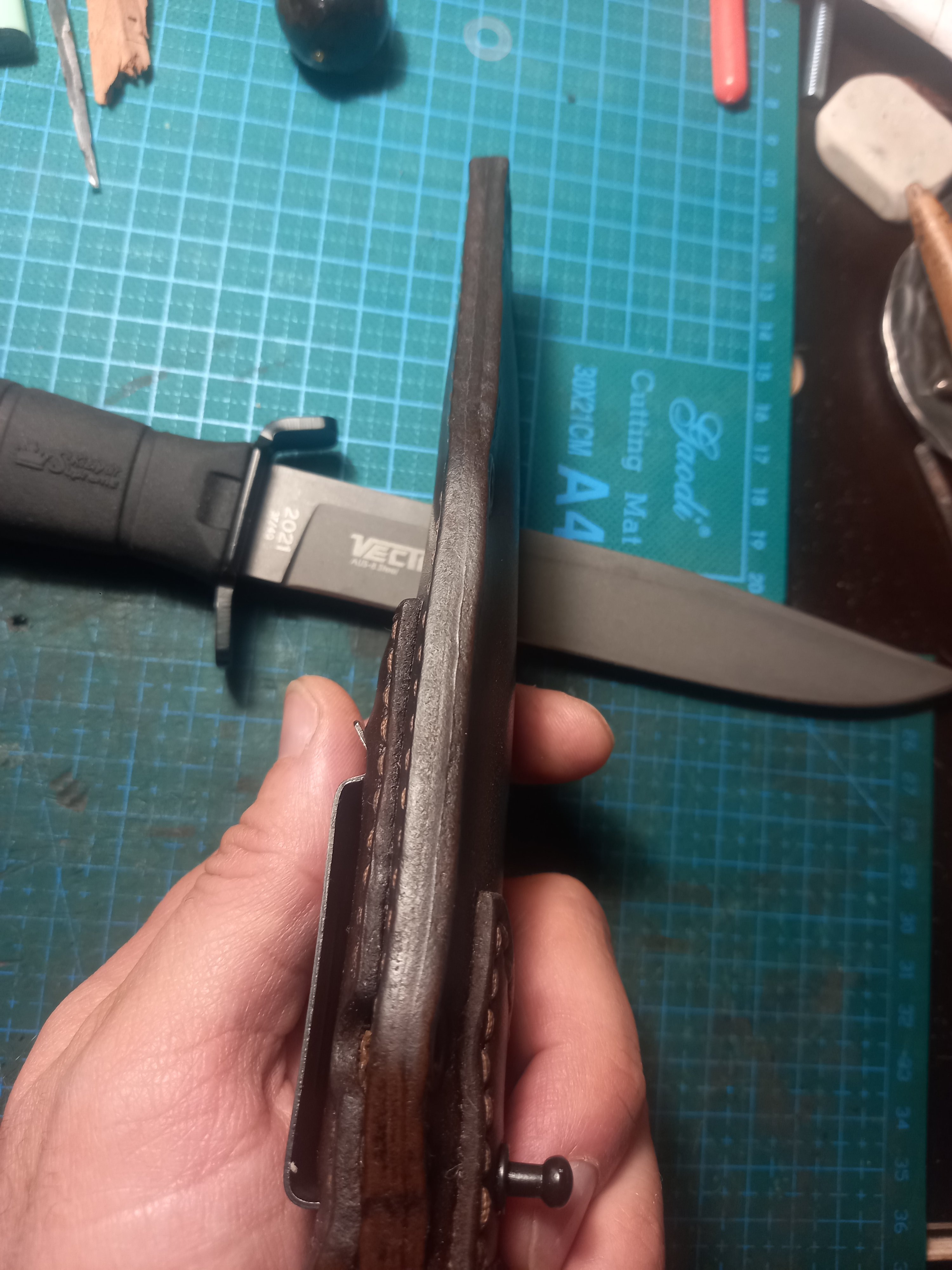 Ножны на Вектор: Кожа буйвол С пистолетной клипсой, подвес никакой не подразумевался. Люверсы под паракорд. Голову ломал как их поставить - толщина ножен большая. Максимально длинные люверсы удалось купить на 8 мм ножка. Пришлось спустить толщину по краю на обеих половинках, оставив саму кожу посередине изначальной толщины. Кожа пропитана жестко, чтоб держала форму, и клинок входит максимально свободно, удержание только хлястиком. Торцы затерты воском, для водостойкости. И фоты в процессе немного есть:- 5 ответов