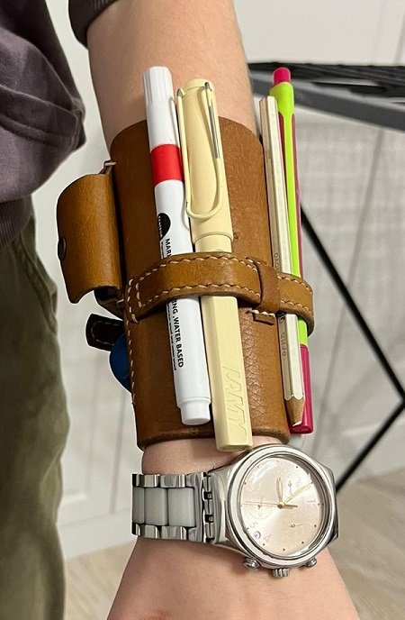 Добавлю. Не ножевое. Делал некоторое время назад, на заказ дочери друзей -будущему архитектору)) Держатель для карандашей, ластика и т.д., чтобы все было под рукой при перемещениях. Фото сохранились только такие, к сожалению, из переписки в ватсап. -