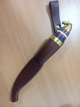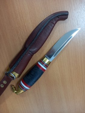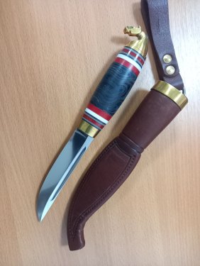 Здесь думаю, вряд ли подобным кого удивишь, тем не менее, пусть полежит Предназначался в подарок хорошему человеку, и благополучно в сентябре задарен. Мои здесь только рукоять и ножны. Клин работы Рената Ахметулина с ганзы. Сталь вроде бы 110х18, надо уточнить в переписках. Рукоять гренадил, собрана на винты корби и трубку Ножны кожа, раст. дубления- 2 ответа