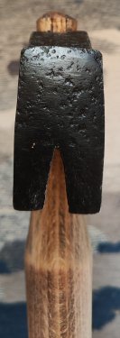 15-й. Крепкий, клейм нет, очищен и заворонен, без трещин и ремонта, гвоздодер отличный. Высота головы 18,4 см, р.к. 10,5 см. Рукоять бук длина 40 см. Чехол из натуральной кожи в подарок. 6500+ почта -