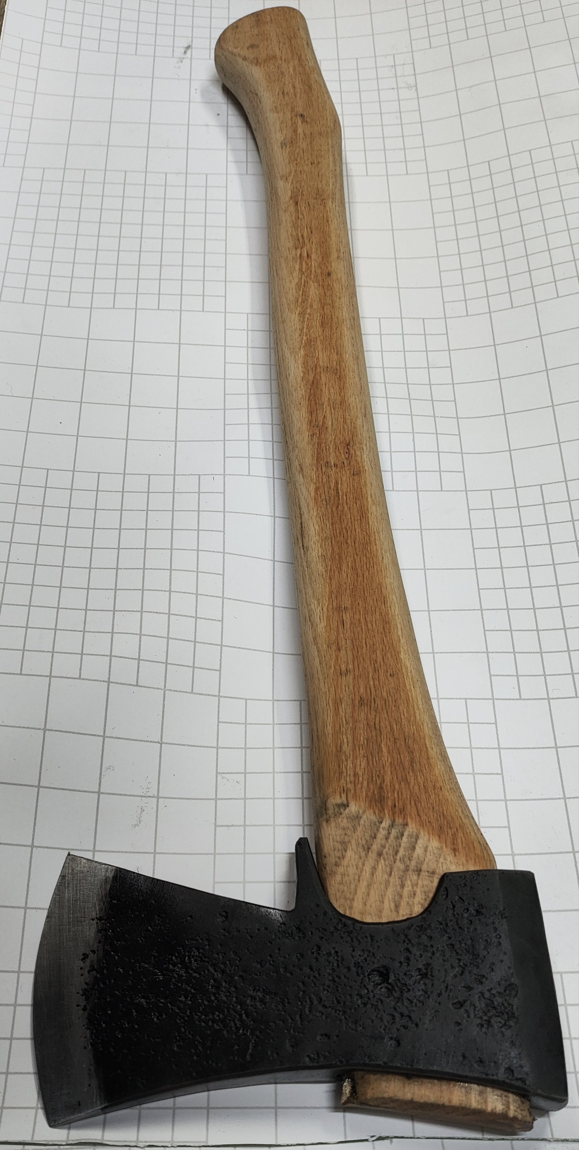 4. 10-й. Остатки круглого клейма завода Труд Врача 1930-х годов. Геометрия отличная, не уточен, не забит, без ремонта и трещин. Очищен и заворонен. Высота головы 17,5 см, р к. 13 см. Рукоять вишня длина 38,5 см. 5500+ почта.