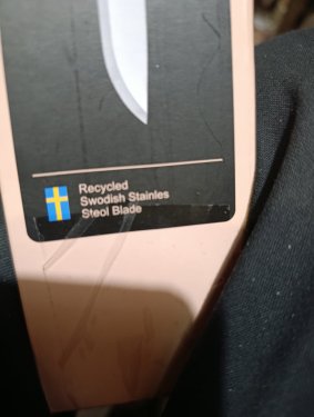 А это воскресенье на уделах зацепил интересный ножик. V. Kamppila, Kauhava, Suomi. Гуль показал Reino Kamppila, фирма Ahti, мастер в третьем поколении. Оковка -цинк. Береста старая, волнами. Какие годы?