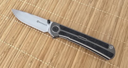 Vosteed Naga Клинок - 88 мм из S35VN. Замок - лайнер с кнопкой. Рукоятка - микарта различных вырвиглазных расцветок.