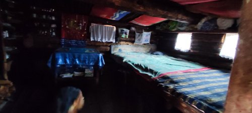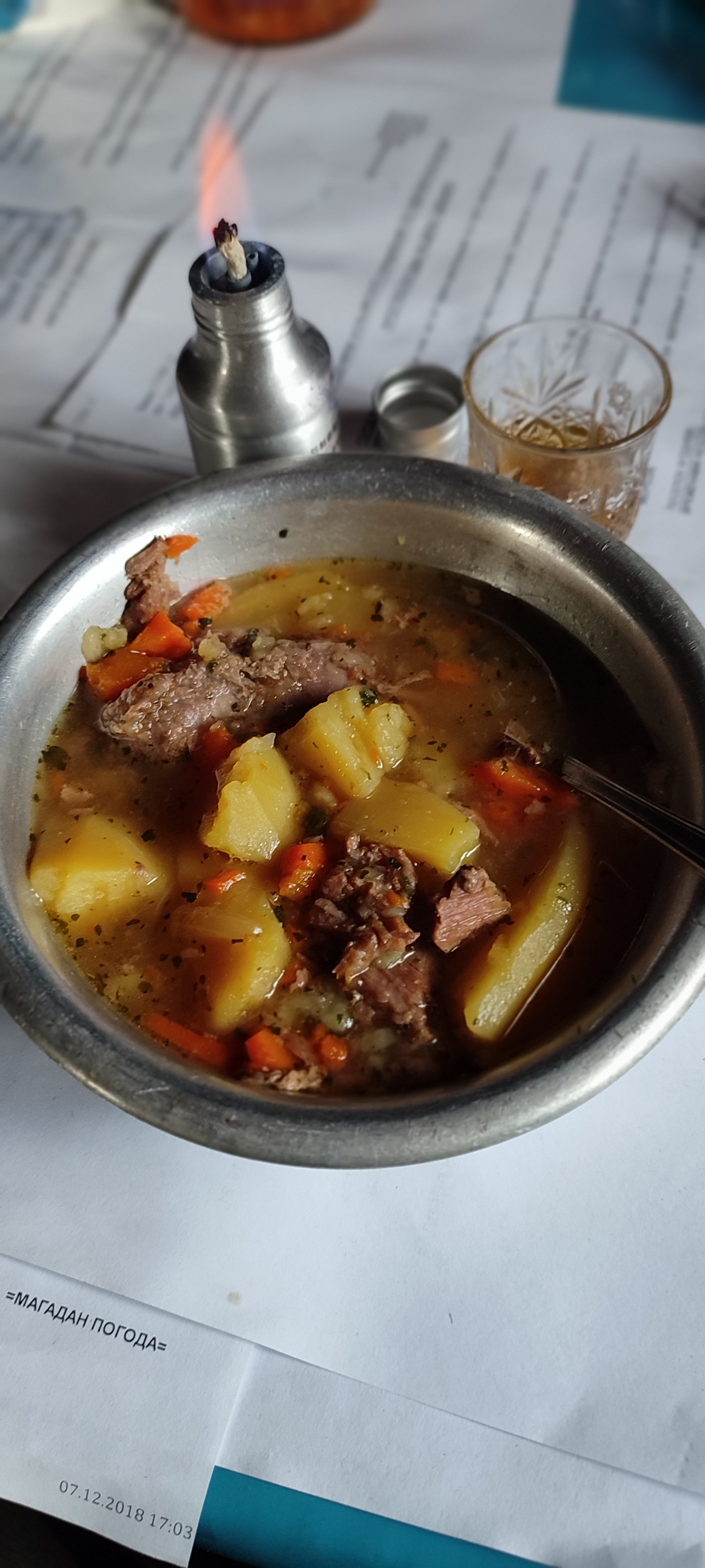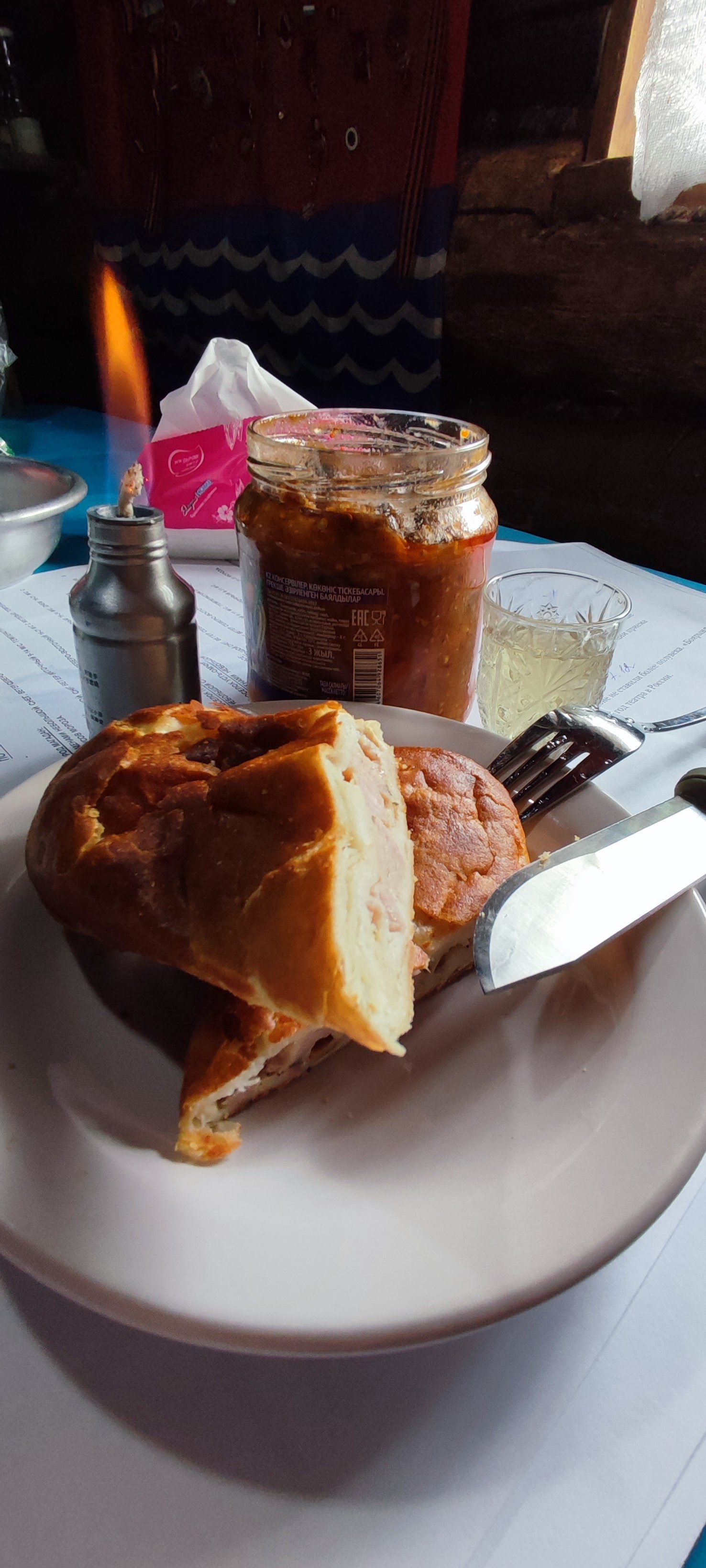 Обед на лесной избе. Нож - дешёвая реплика Моры. Оригинальный Кансбол потерял в кустах стланика, пришлось замену искать. На удивление, неплохая реплика.