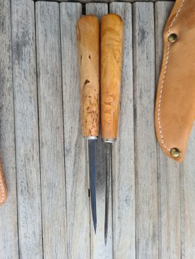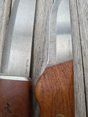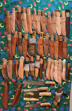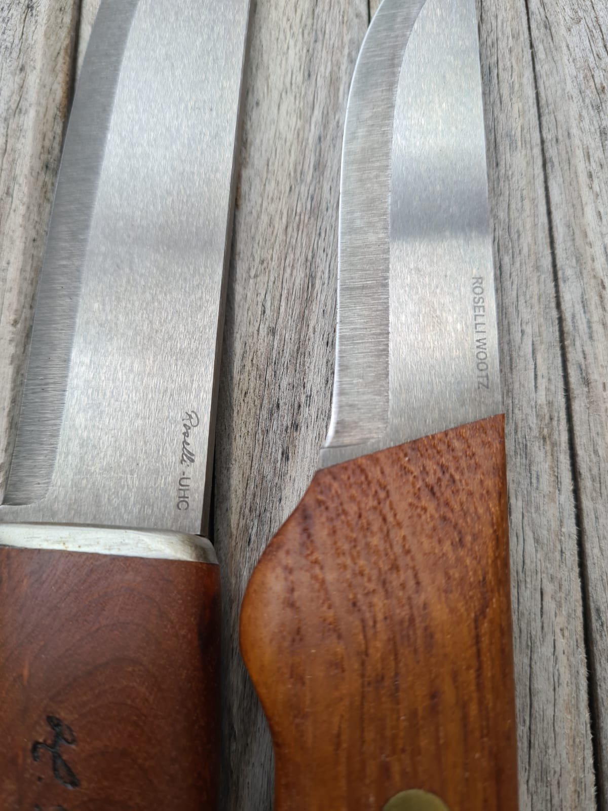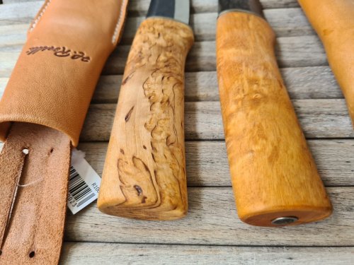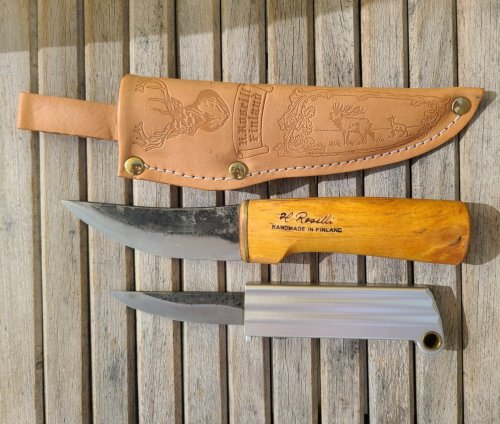 Зарекался больше не покупать … но, хотелось подержать в руке современные и вот ,подвернулись . тк среди этой кучки два довольно редких ,и купить их не легко тк уже не производятся - раздумывал не долго. Первое впечатление : был приятно удивлен, собраны качественно , заточка – бреют, щелей нет. Ножны без нареканий ,нож входит идеально, выходит с трудом . Причем, ранние аналогичные модели , заходят в новые ножны, как в свои родные. эту модель ,RW40 ,я не понял.. в руку не лег... а с такими ценами .... Roselli Big Heimo RW40 https://mygoodknife.com/de/shop/finnish-knife-roselli-big-heimo-rw40-101cm/ H. Roselli Jagdmesser »Long«, UHC https://mygoodknife.com/de/shop/finnenmesser-roselli-wootz-uhc-hunting-knife-with-long-blade-rw200l-143cm/ у нового клин на 0,1 толще решил сделать групповое фото , и охуфигел, не думал ,что столько повылезало из разных коробок. эти два не попали и где то топорик завалялся С новым годом.