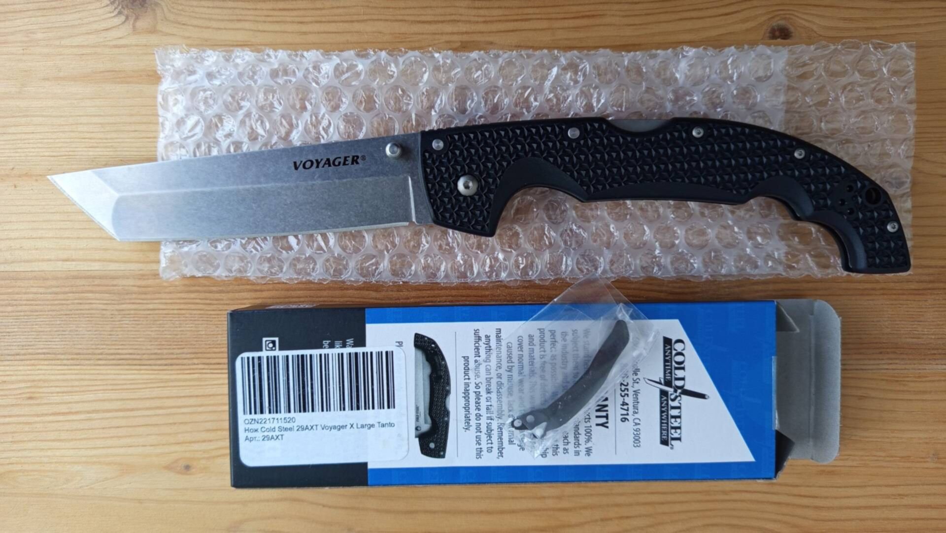 Нож COLD STEEL VOYAGER TANTO EXTRA LARGE PLAIN 29AXT CS_29AXT продам, новый в коробке. Цена 10000 плюс пересыл от 350 р. Вернул в продажу только до 11.01.2026, пересыл бонусом. Твердость по шкале Роквелла (Hrc) - 58-60 Тип обработки или покрытия клинка - Stonewash Длина ножа (см) - 31,12 В сложенном виде (см) - 17,5 Длина клинка (см) - 13,97 Толщина лезвия (мм) - 4 Вес (гр) - 218,22 Тип заточки - Plain Тип ножевого замка - Tri-Ad Lock Тип профиля клинка - Tanto Материал рукояти - Grivory Марка стали - Japanese AUS-10A Назначение - Tactical Folding Knife Страна изготовления - Тайвань- 62 ответа