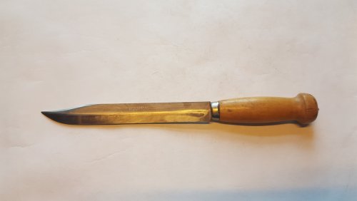 Доброго всем времени. Хочу поделиться радостью в связи с приобретением вот такой Моры от K.J.Eriksson. Лёгкая, вёрткая, реально "перо". Клин- ламинат, 125мм. Рукоять- карелка. Есть у кого идеи по возрасту оной? Буду признателен.