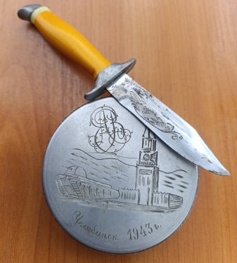 Подарочный нож и табакерка принадлежали военпреду Челябинского тракторного завода(танкоград)- капитану Полячок Евсею.
