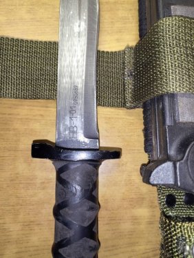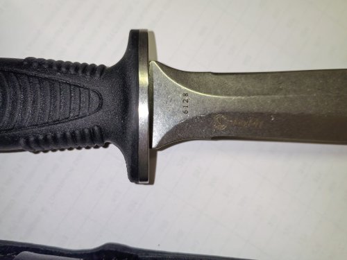 Не на фото тот что местные умельцы сделали, взамен. Этот хрен сломаешь))), Х12МФ обух 4,5мм, а родной был точно как у топикастера))) ну с чего то надо было начинать метать))) хотя нет, первым летающим был 6х4, во время выездных караулов, да да ломучий и все в этом роде, руки то наши не для скуки, кино то мы видели, ВДВ как лихо метает))) а мы что хуже))))но будем сказать повезло, а теперь по факту этот нож являлся родоначальником моей коллекции. Заболел)))) теперь это геморрой)) ну только говорить не стыдно и показать при случае друзьям. Ну жена трещит за деньги))) хотя это не семейные деньги((( желание приобрести очередной экспонат заставляет мозги и руки крутиться и вертеться))) но ее успокаиваю это вложение денех))) вот останешься одна будешь распродавать по одному, в месяц))) вторая пенсия будет, хватит на долго