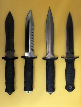 Не на фото тот что местные умельцы сделали, взамен. Этот хрен сломаешь))), Х12МФ обух 4,5мм, а родной был точно как у топикастера))) ну с чего то надо было начинать метать))) хотя нет, первым летающим был 6х4, во время выездных караулов, да да ломучий и все в этом роде, руки то наши не для скуки, кино то мы видели, ВДВ как лихо метает))) а мы что хуже))))но будем сказать повезло, а теперь по факту этот нож являлся родоначальником моей коллекции. Заболел)))) теперь это геморрой)) ну только говорить не стыдно и показать при случае друзьям. Ну жена трещит за деньги))) хотя это не семейные деньги((( желание приобрести очередной экспонат заставляет мозги и руки крутиться и вертеться))) но ее успокаиваю это вложение денех))) вот останешься одна будешь распродавать по одному, в месяц))) вторая пенсия будет, хватит на долго