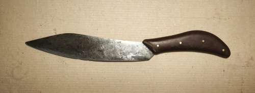 Спецзаказ. Изготовлено в СНГ. Корявый нож в прямом и переносном смысле. Не технологичный и не практичный. Но в коллекцию надо.