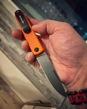 Пока пользуюсь ножом, все больше проникаюсь уважением к нему. Внимание к мелочам конечно впечатляет. Фаски сняты со всех торцов с маниакальной тщательностью, при этом все линии переходов четкие и ровные. Насечки везде, где это нужно, при этом без фанатизма ради дизайна Вот такая фишка - площадка на пяте клинка создает одну поверхность с выемками на плашках рукояти. Насечки добавляют "шершавости" поверхности. В итоге палец это место ощущает как единое целое, а не как бутерброд микарта/металл/микарта. Это второй нож после "Царапдерко" (Царап с кастомным клинком под мои запросы), который смог залезть мне в подкорку и поселиться там основательно. ЗЫ: но кааак, при такой дотошности к деталям они не смогли подогнать по месту лайнер замка? )))))
