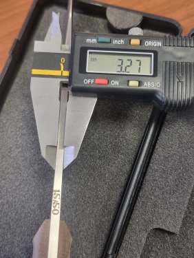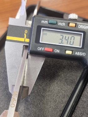 Создаётся впечатление, что таким образом исправляли сколотый кончик - в отличие от "собрата", линия РК в этом месте не гладкая, а как бы состоит из отдельных сегментов (хорошо видно при игре света).