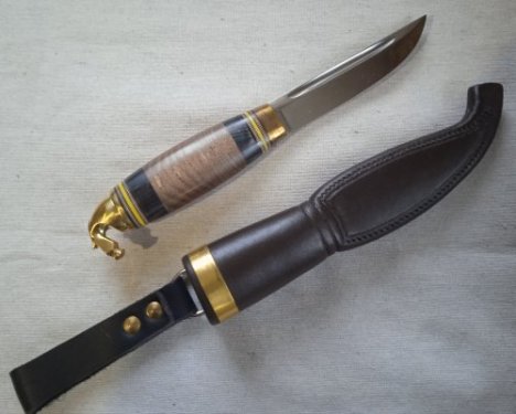 продам финки-лошадки находятся в Тверской области оплачиваются на карту сбер... 3908 резервировать в теме и, во избежание недоразумений, писать в личку или на bonarts@mail.ru отправка Почтой России только по РФ за счёт покупателя финка-лошадка "Сату", работа Николая Шлëпова #1 общая длина 225 мм клинок: сталь Böhler-Uddeholm K340, 110x21х4 ребро и 3 мм обух (ромбик), сведение в ноль рукоять: стабилизированная карелка с акрилом, цветная G10, латунь, на расклëп ножны: кожа, латунь, вкладыш цена 7000 руб. РЕЗЕРВ