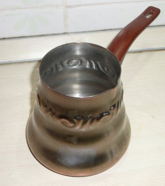 Турка ( джезва) для варки кофе продается. Бренд WB WELLBERG. Полная емкость 900 мл. Материал: пищевая нержавеющая сталь. Наружное декоративное омеднение «под старую бронзу». Ручка – карболит коричневого цвета. Размеры: высота 110 мм, верхний диаметр 78 мм, нижний диаметр 118 мм. Внешний вид – легкое БУ. Цена 600 р.