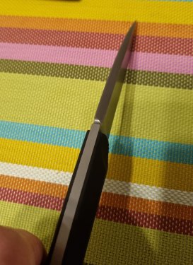 Забрал. Механика не отличима от оригинального варианта, толщина клинка подобрана в точности такая же- 6мм. Сведён раза в три тоньше оригинала, режет теперь отлично, чего и хотелось получить.