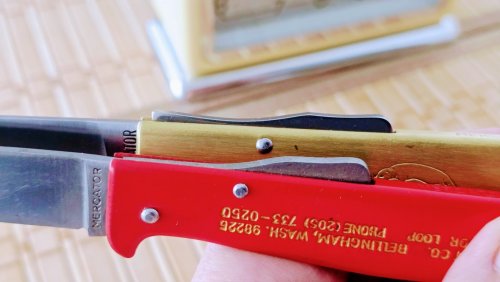 Вот, понадёргал из сети. По идее, с этого должна была начинаться тема, но никогда не поздно. Компания владела брендом Mercator с 1856 по 1995 год. В 1995 году компания Otter-Messer приобрела Mercator у Kauffmann. В настоящее время Kauffmann является подразделением Otter-Messer. С 1891 по 1952 год на лезвии и на торце рукоятки была нанесён штамп Mercator D.R.G.M. На ножах же послевоенного выпуска 1953 года и более новых моделей всегда имеется штамп Mercator Germany. Ножи, выпущенные до 1952 года, были примерно на дюйм (2,54 см) больше, чем ножи Mercator, выпущенные после 1953 года. Кроме того, с 1953 по 1995 год проставка, вставляемая в заднюю часть рукояти, на большинстве ножей была красной, после 1995 года она была заменена на черную, это было сделано сразу после того, как Otter-Messer выкупила права у Kauffmann. Во время двух мировых войн нож пользовался огромной популярностью у немецких солдат и официально не выдавался рядовому составу. Солдаты покупали его на свои сбережения и называли его "Kaiser Wilhelm Messer". Во время Второй Мировой войны эти ножи были весьма востребованы американскими солдатами, и многие ножи были привезены в США после войны в качестве сувениров.