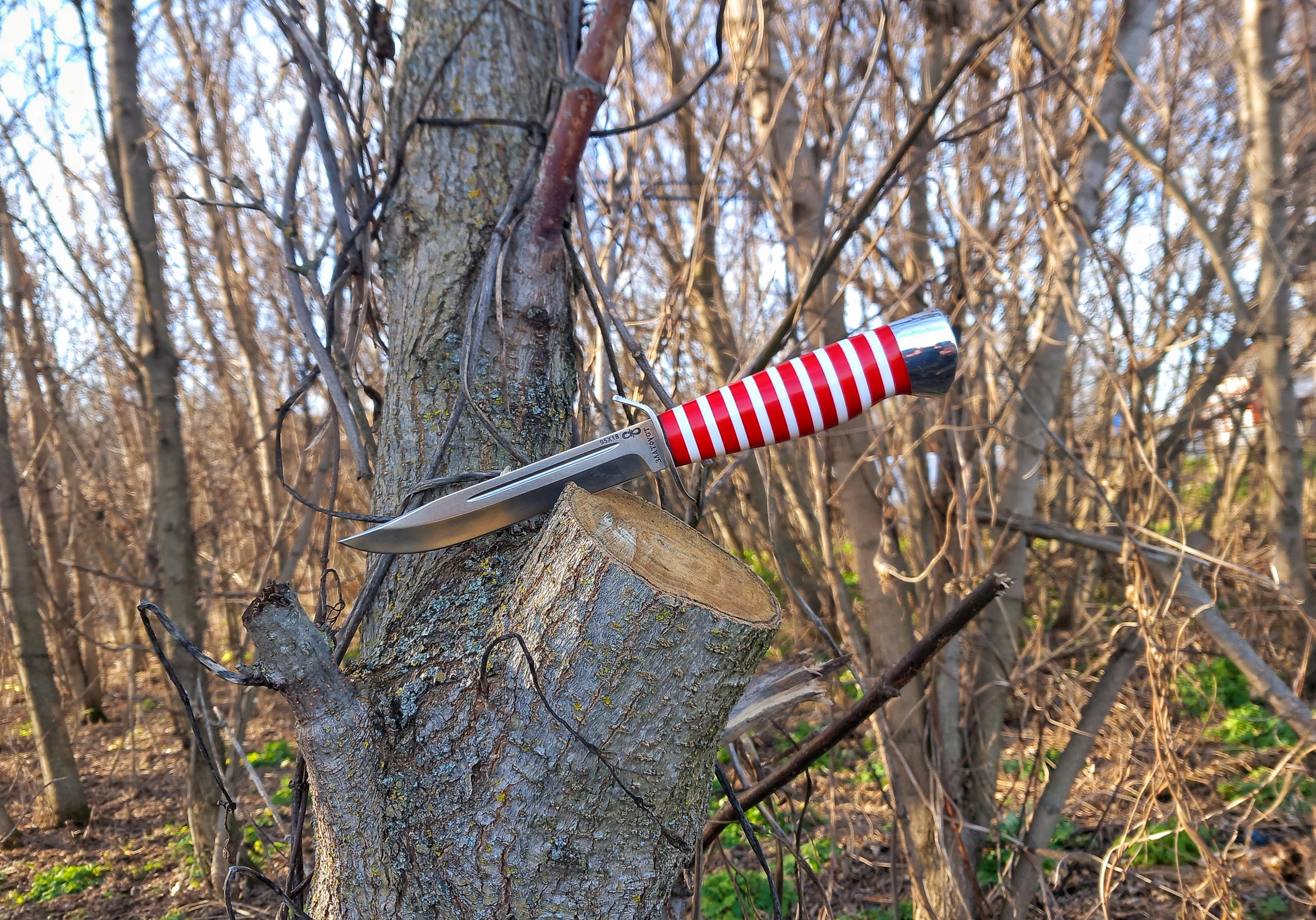 5. Штрафбат от АиР, в 95Х18. Давно хотел именно в этом исполнении - рукоять оргстекло с красными (краповыми) полосами, отсыл к Внутренним Войскам. Служил там, в своё время...