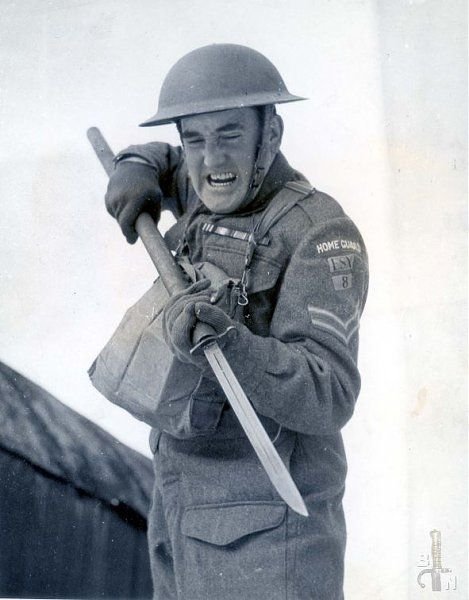 6. Боец Хоумгварда тренируется отражать нападение десанта немцев с пикой.1940г. После эвакуации БЭК с континента в Британии с оружием стало несколько туго. "Армию папаш", как прозвали ополчение (Home Guard) надо было вооружать и желательно быстро. Вооружали всем чем могли, не брезгуя различными эрзацами. Одним из таких вундерваффе стали ... пики. В стальную трубу вставляли длинные штыки от винтовок получая короткую пику примерно человеческого роста. Некоторые источники приписывают это изобретение самому Сэру Уинстону Черчиллю, но каких-либо доказательств этого нет. Материал из VK, группа Техника. Оружие. Война.
