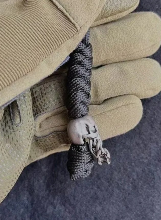 Бусина какая-то отсылка к "Пиратам Карибского моря". На ВБ брал, вместе с темляком. Но, наверное, переплету с более цветным паракордом...