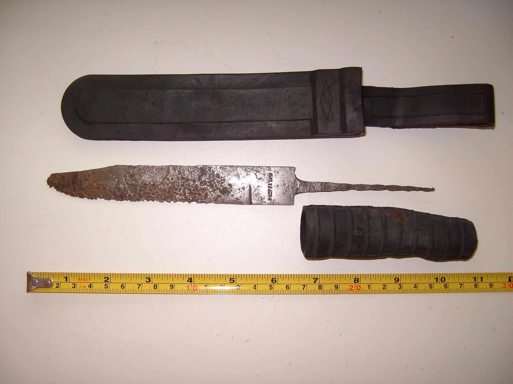 Странно мне это- неужели для работы в морской воде (не в реке же аварийно покидать подлодки) в СССР спроектировали нож с клинком из углеродистой стали (и даже без какого-нибуть защитного покрытия) и с деревянной ручкой, частично прикрытой ребристым "гандоном". Резиновые ножны не имели отверстия для слива воды, зато были с ржавучей заклёпкой (хотя в изобилии были и медные, и алюминиевые клёпки).