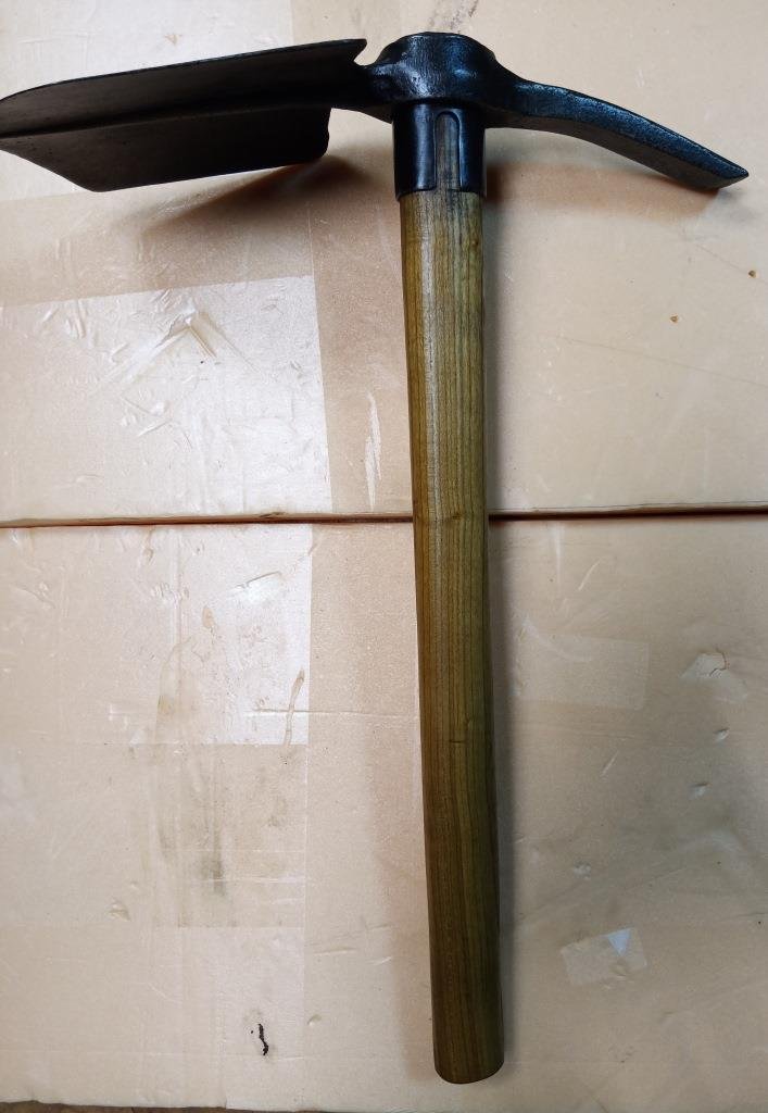 Chillington. Кирка-лопата времен английской интервенции на севере России в ПМВ.  Дольше всего провозился с металлической втулкой, остальное сравнительно быстро. Электролиз, холодное воронение, льняное масло. Рукоятка изготовлена из вишни на ток. станке с последующий доводкой до овала на гриндере. Также покрыта маслом.