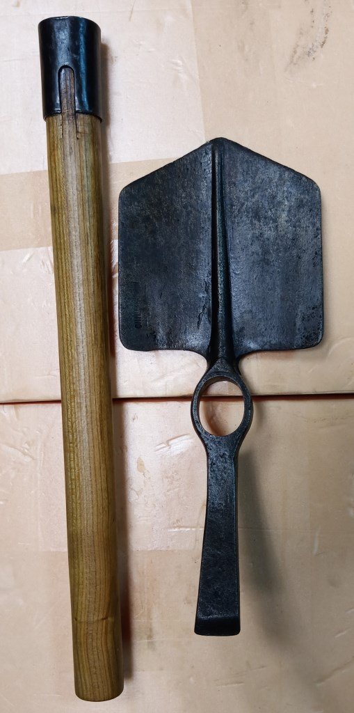 Вот такой вопрос. Такой инструмент, скорее кирко - мотыга. Попадается по ПМВ. Вот только чья? Пересмотрев кучу разных источников по шанцевому инструменту такой не нашел. Может кто что подскажет. Пожилины  - ее, т.к. приехала с остатками деревяшки как раз на уровне пожилин. Вес 950 грамм.