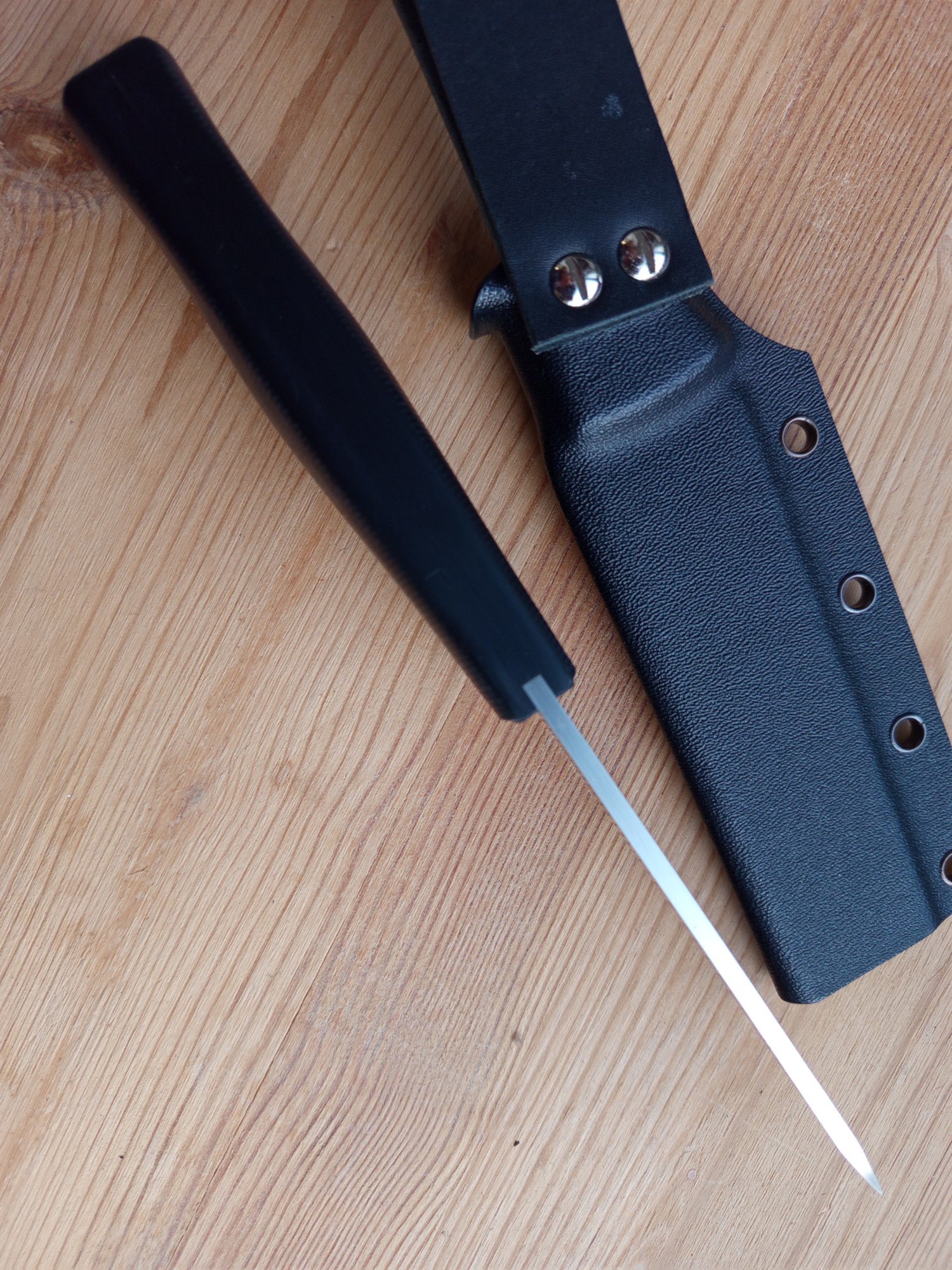 Atropos Knife Арасака, свое прочтение танто с мощными родными ножнами. Полочник, заточка производителя. Цена 6300 плюс почта.