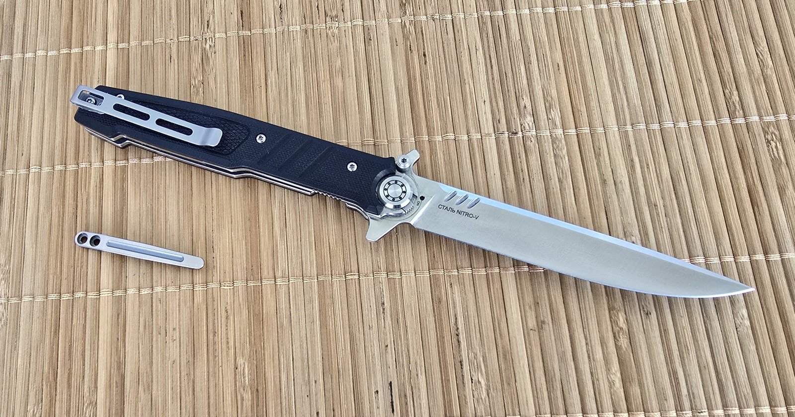 Финка-2 мне понравилась. Опять все, кроме фрезерованной клипсы. Понятно, хотели сделать дорого-богато. Но она же стальная! На дорогих ножах фрезерованные клипсы делают обычно из титана, а у него жесткость другая, он же мягче. Да, и с титановыми клипсами бывают проблемы.