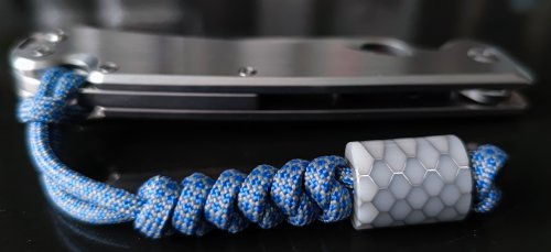 на самом деле, есть грубые толстые "сорта" китайского паракорда, на них она нормально висит. Но и ножик должен быть довольно большой и толстый. Или на фикс.